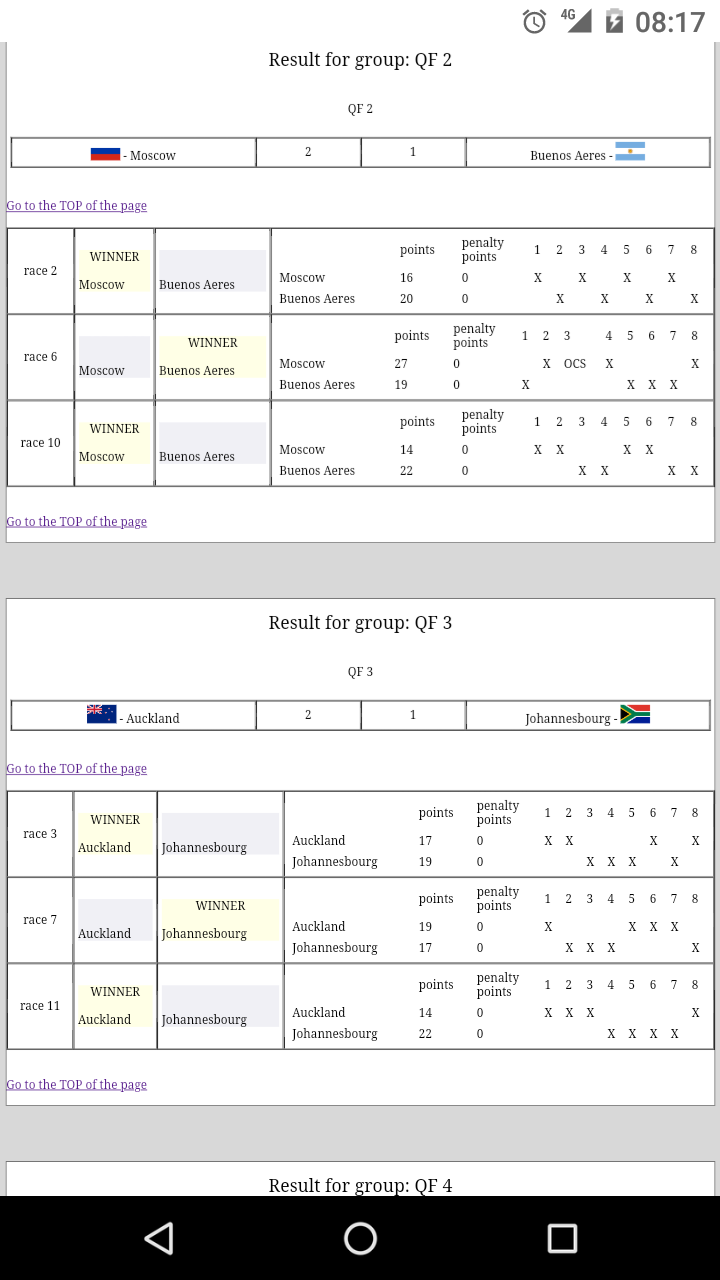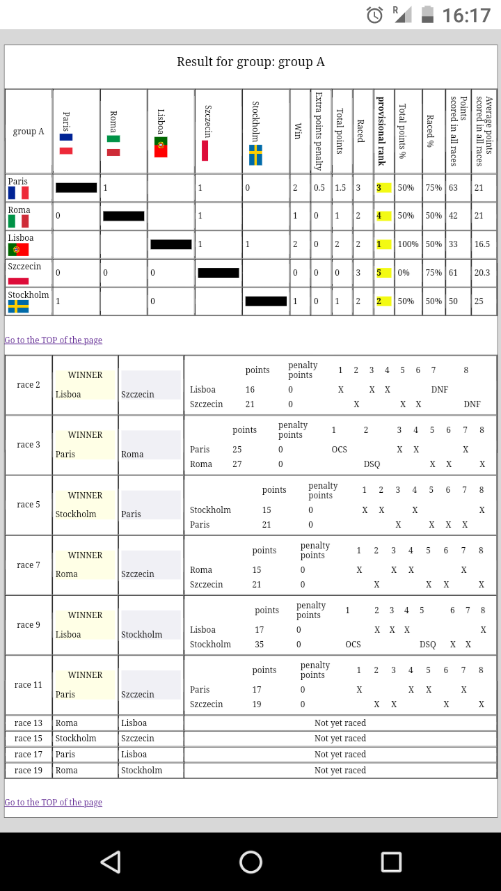 - As a coach/sailor/parents you want to know as soon as possible the result of the team and the ranking of the current round robin and you don't want to wait until the end of the day