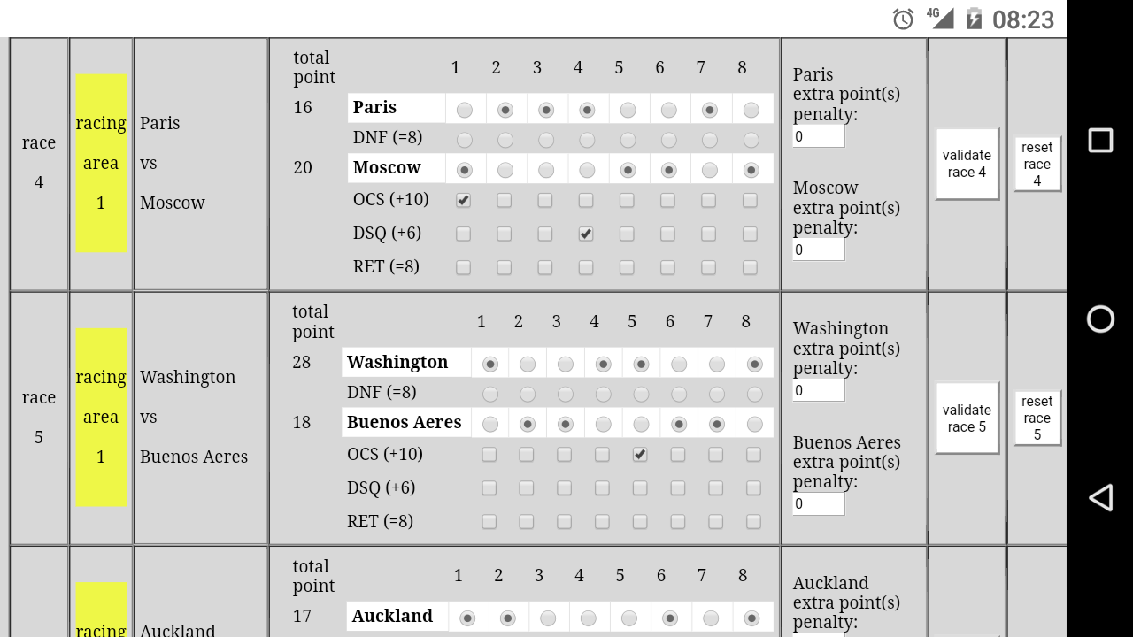 As a race committee, you can enter your result in a real simple way by just clicking/touching your screen: